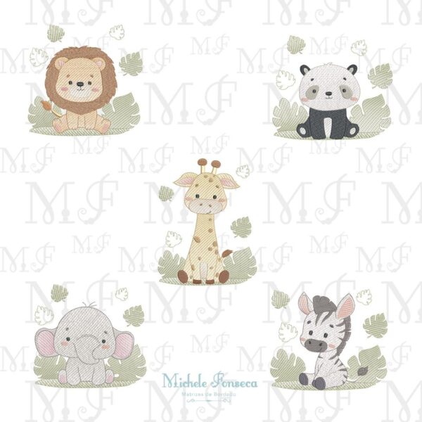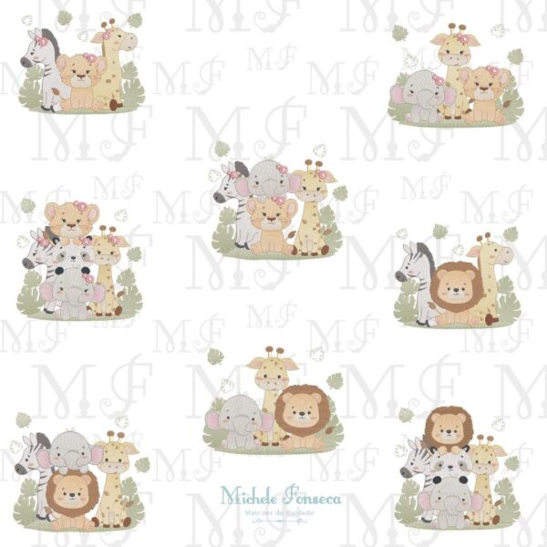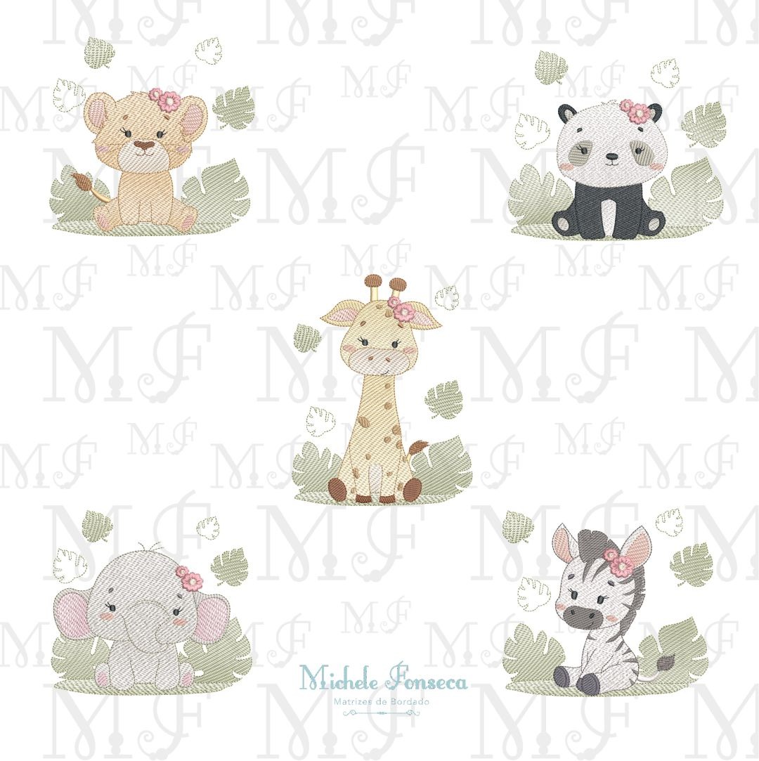 Coleção de matrizes de bordado Amigos safari 2 em pontos leves. São 5 matrizes em versão menino e menina , totalizando 10 matrizes.
